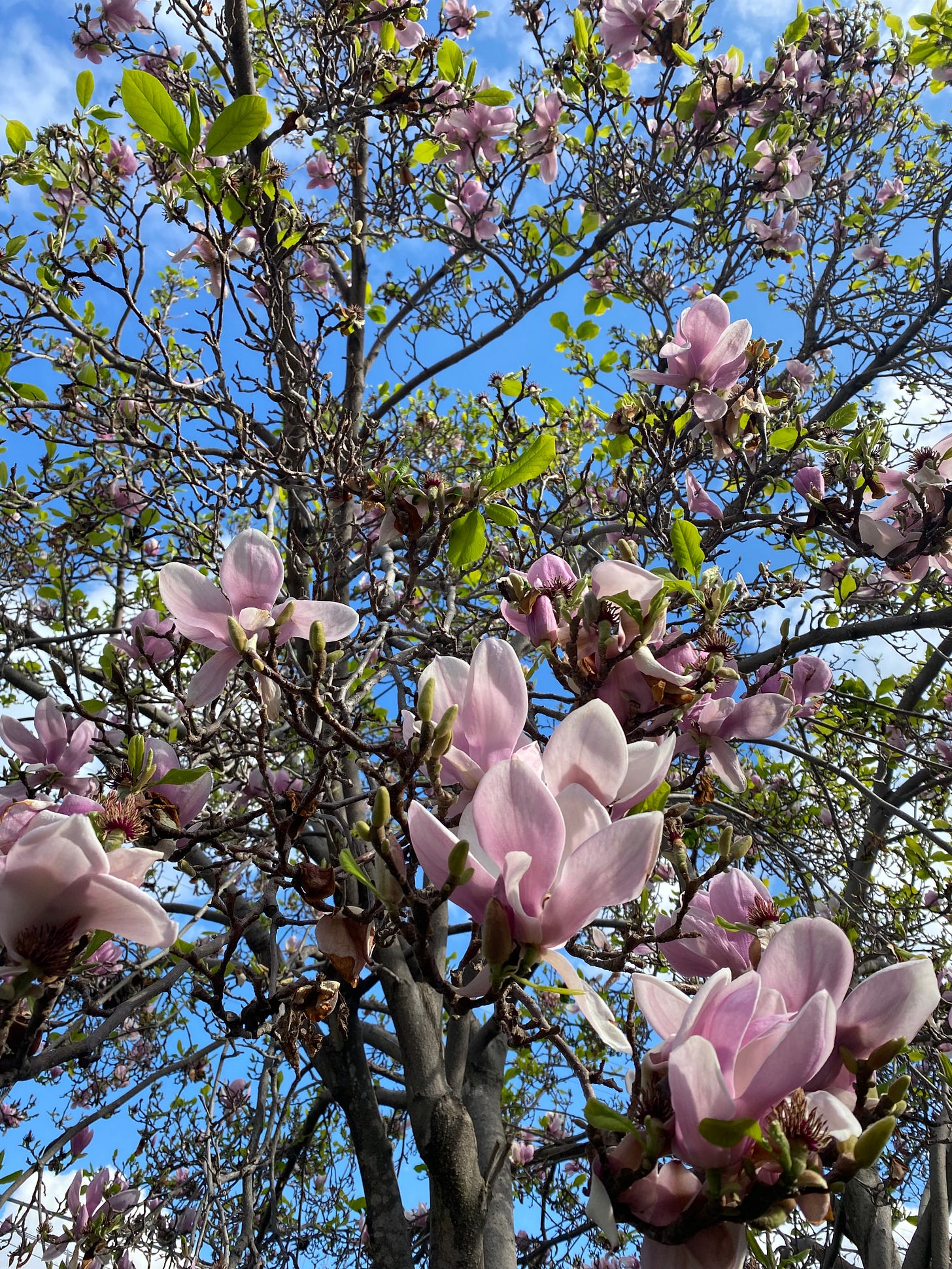 The magnolia trees are starting to bloom here in Los Angeles. I notice the first tender buds as they reach towards the heavens, so hopeful in their eagerness for it to be their time. Blossoms wide and pink, fat and luscious. A welcome shock of color against a dull gray sky.